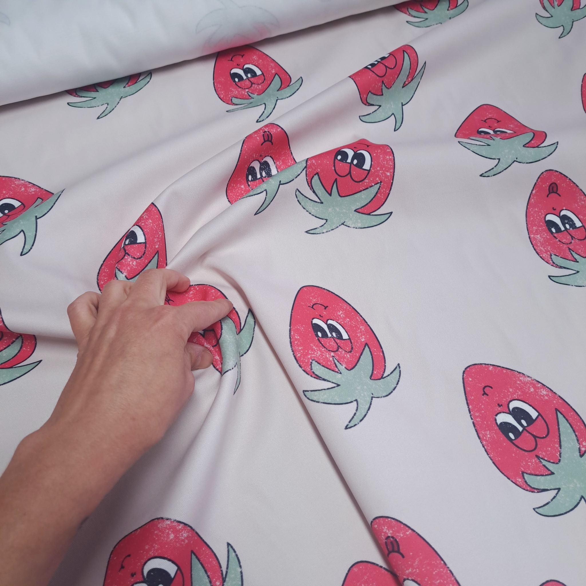tkanina srednio gruba, z malym dodatkiem elastanu,