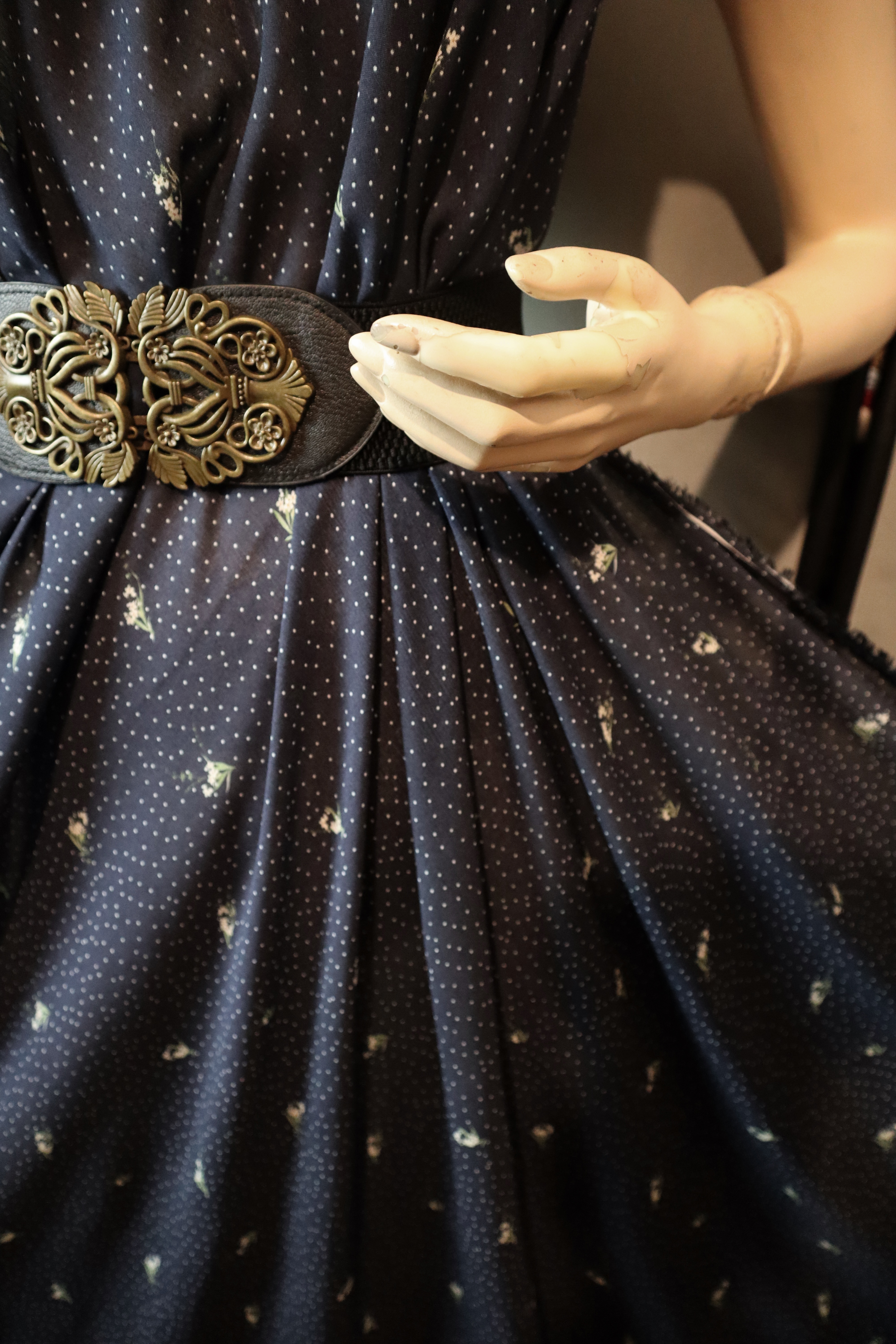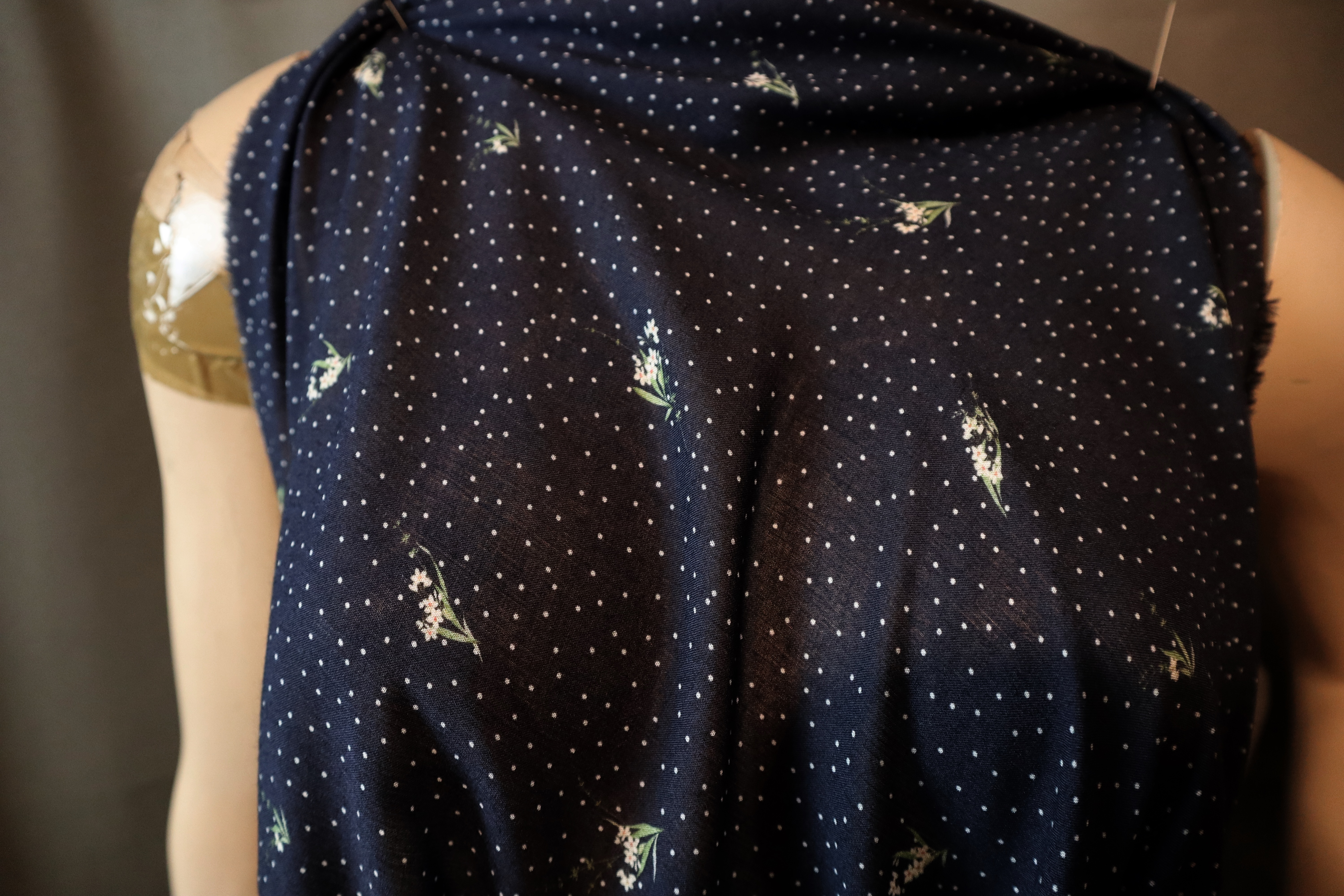 na ciemno granatowym tle - małe kwiatuszki białe