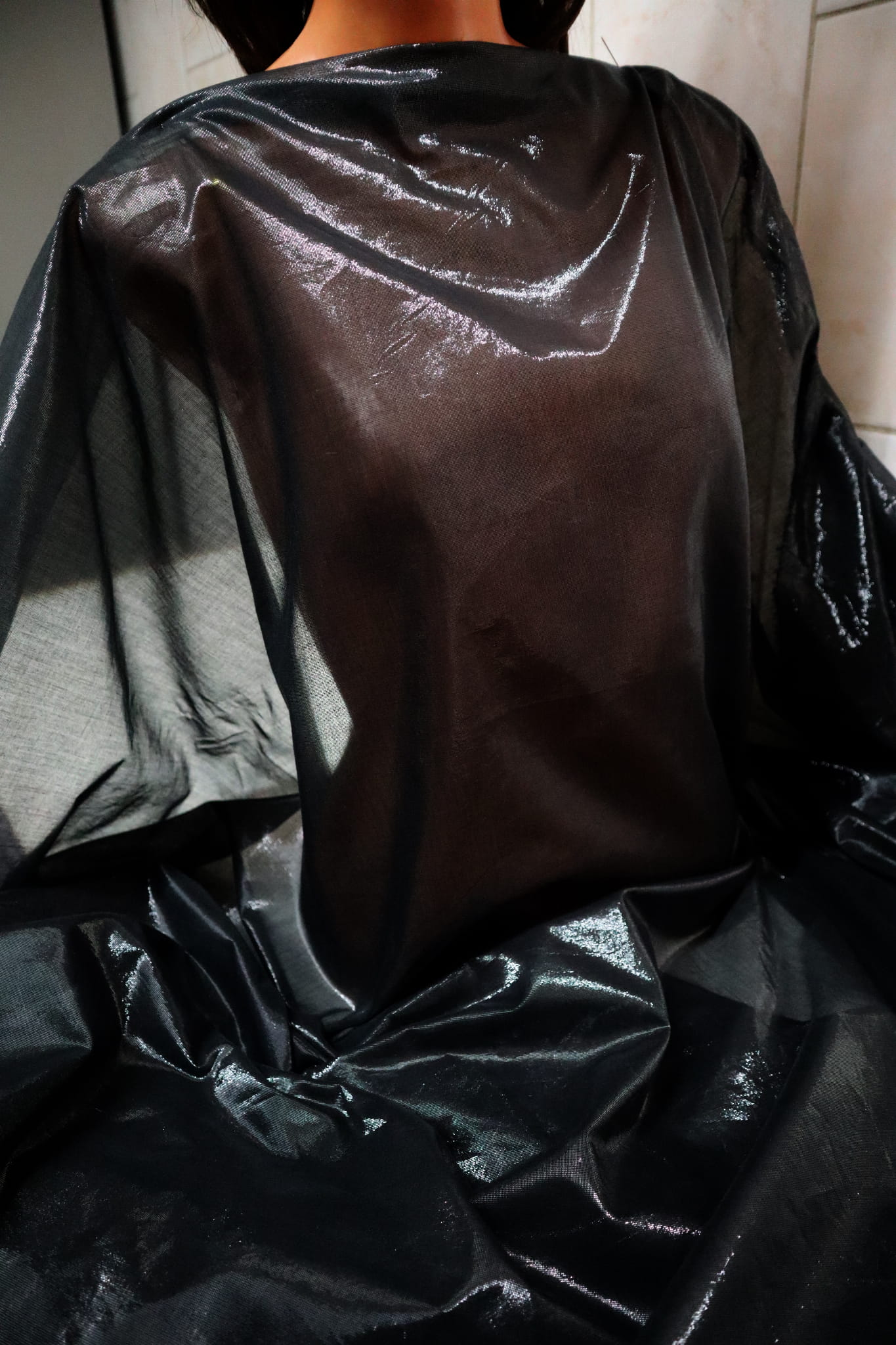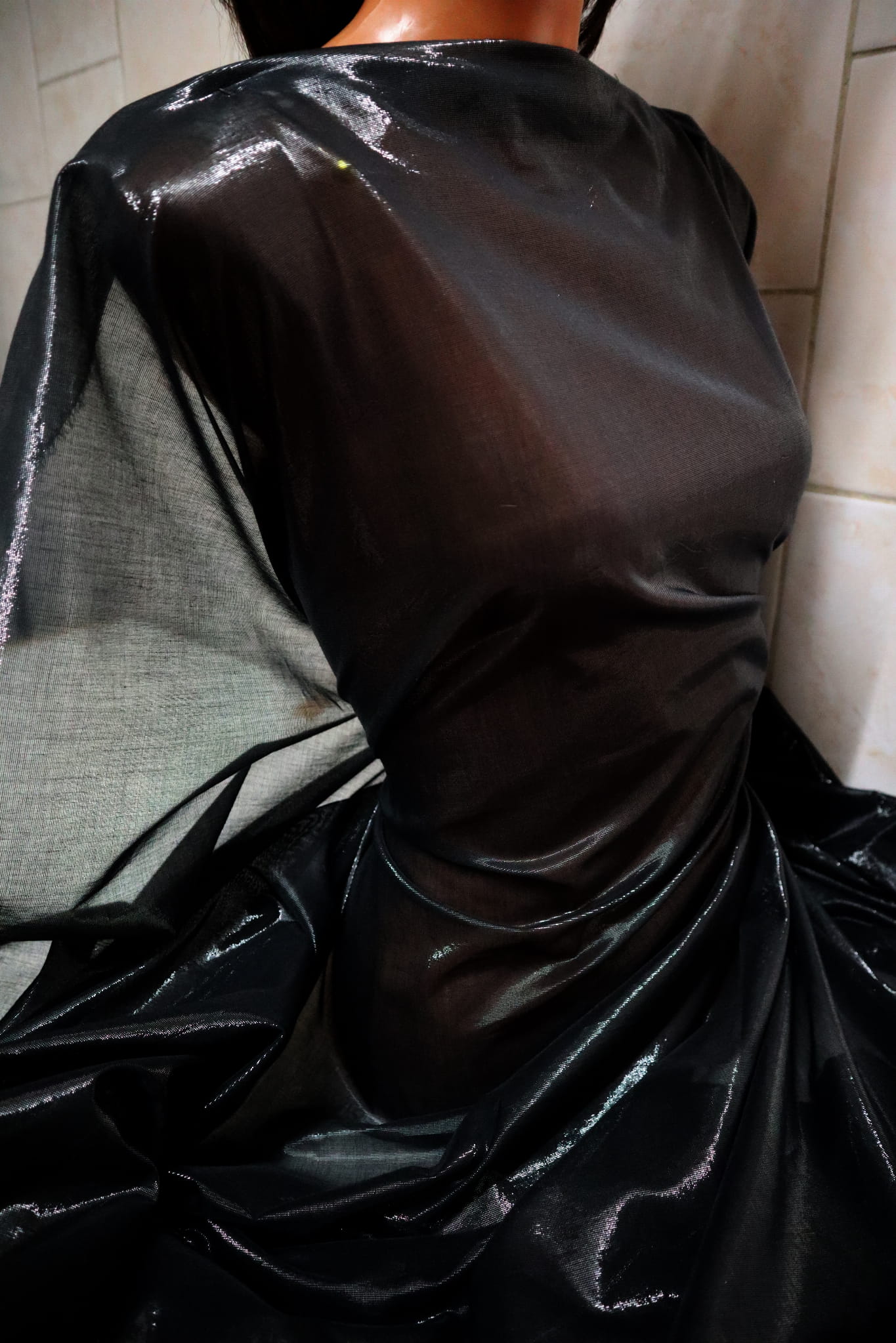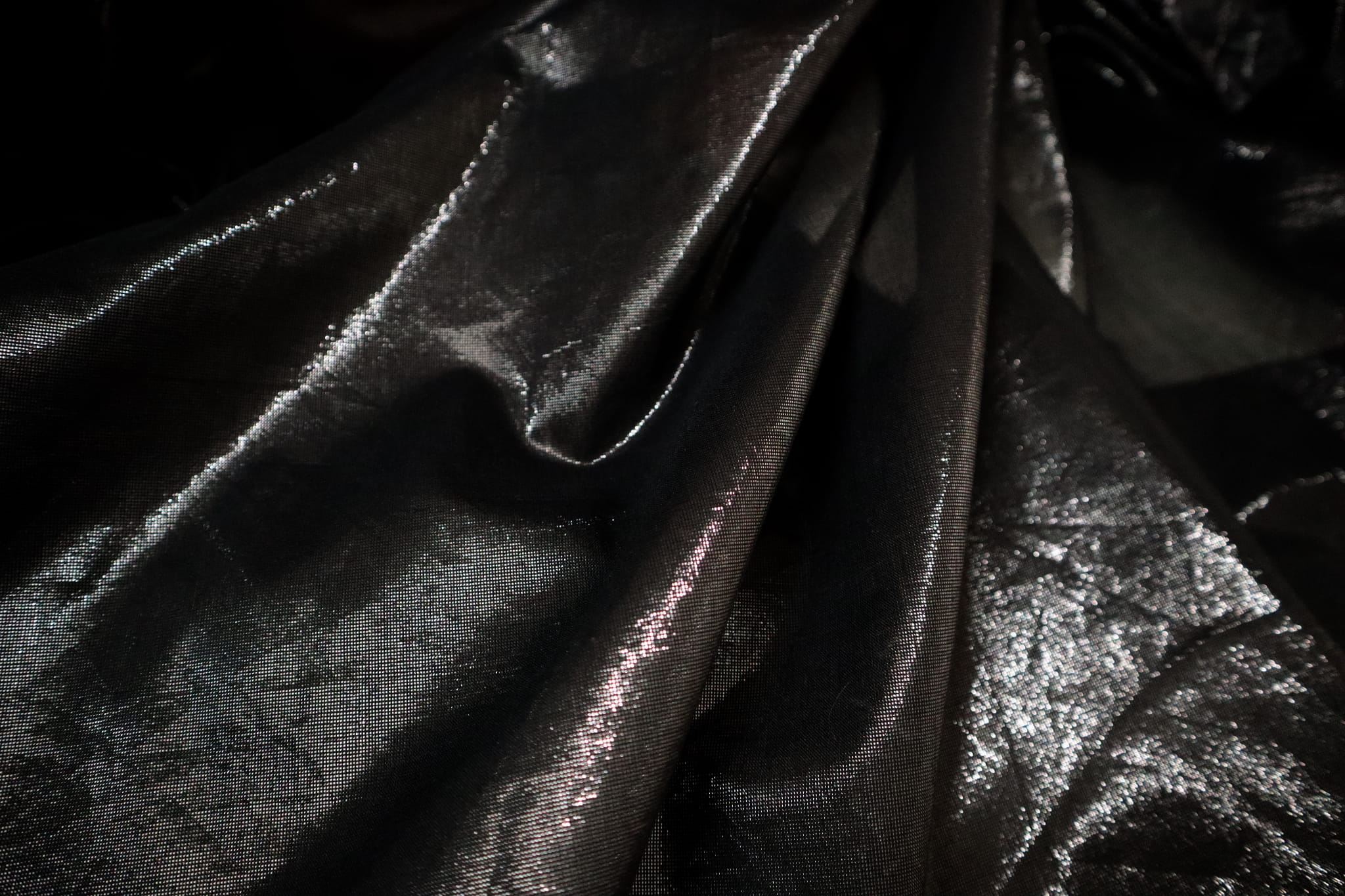 czarna tkanina gaza połysk n.337-černá gázová latka lesk