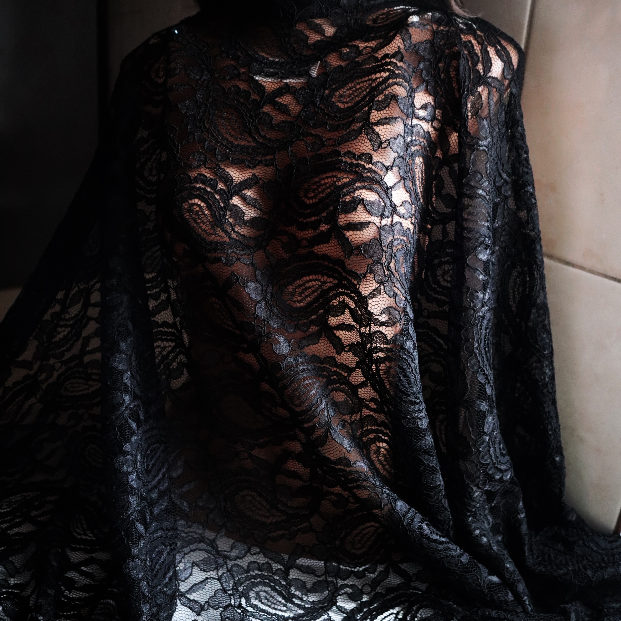 kolor czarny , dobra na bluzki, ażurowe sukienki,