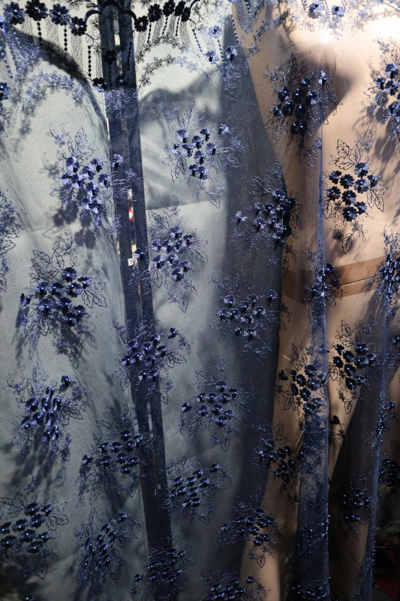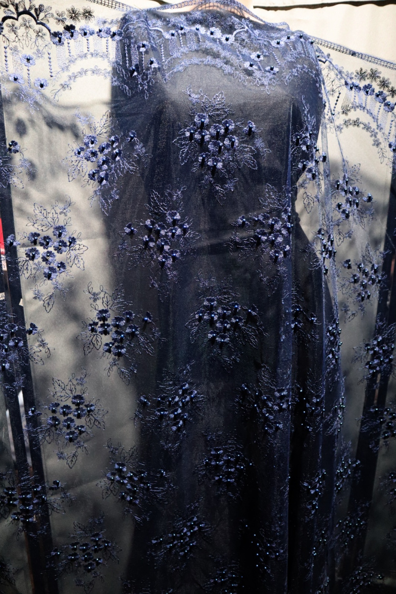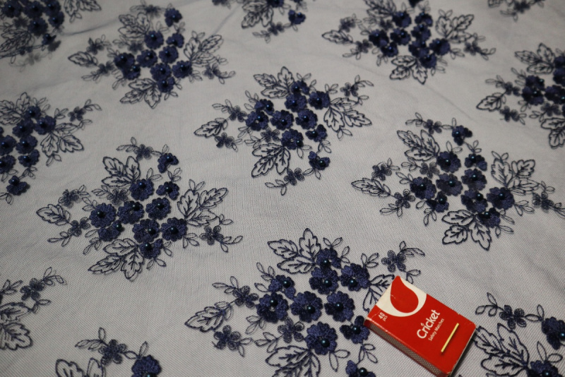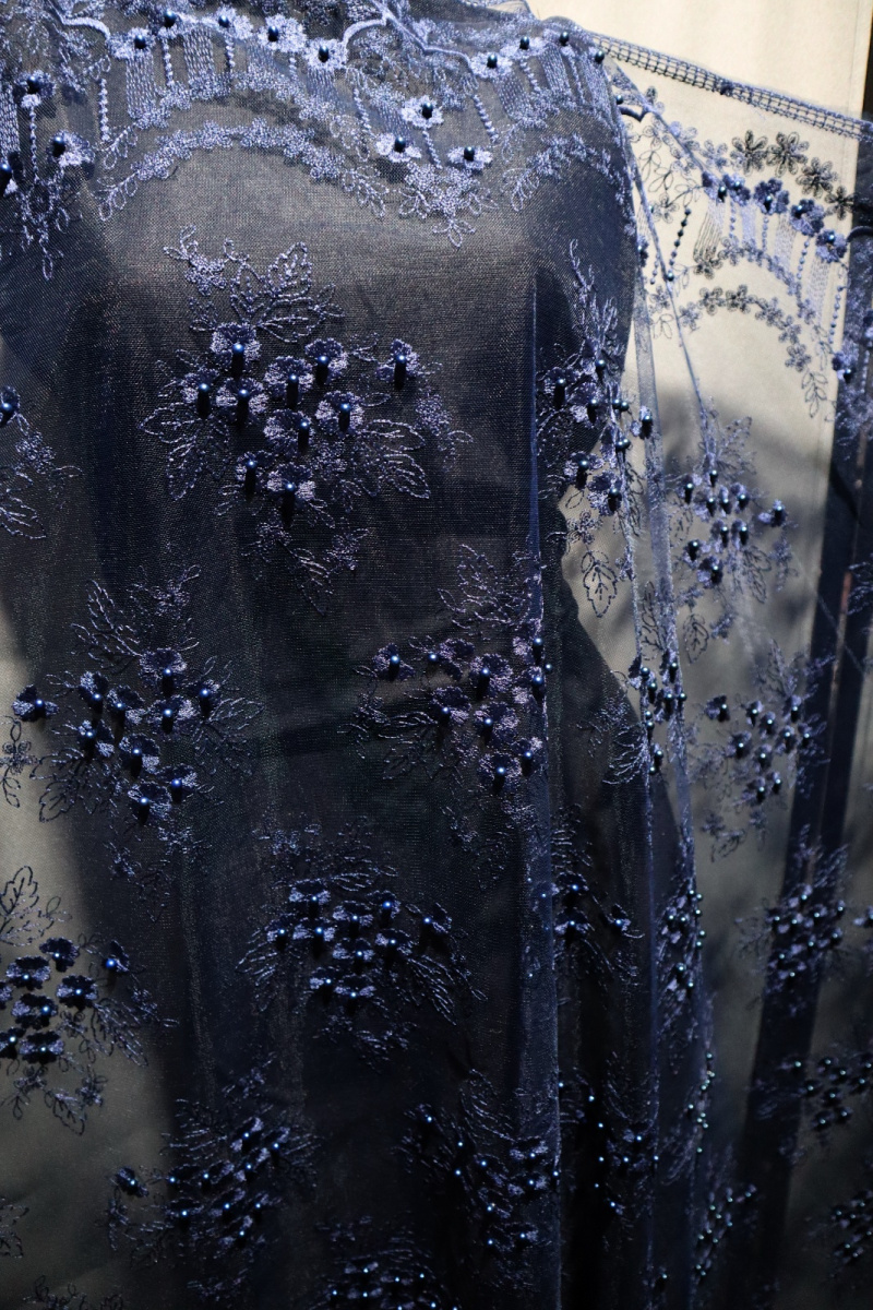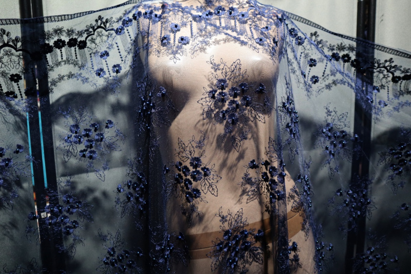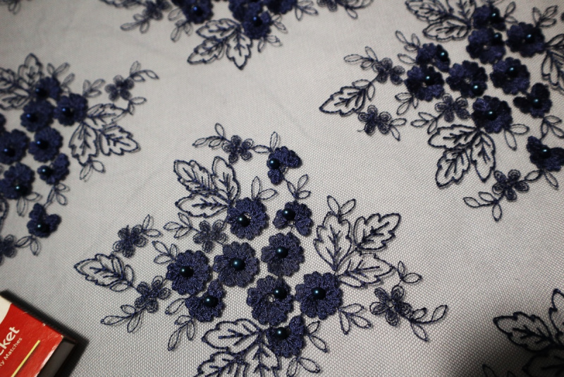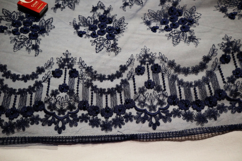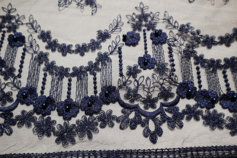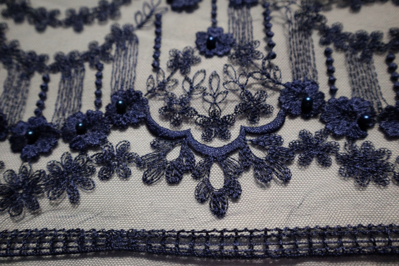 průsvitné, síťka, výšivka, korálky - ve stejné tmavě modré barvě