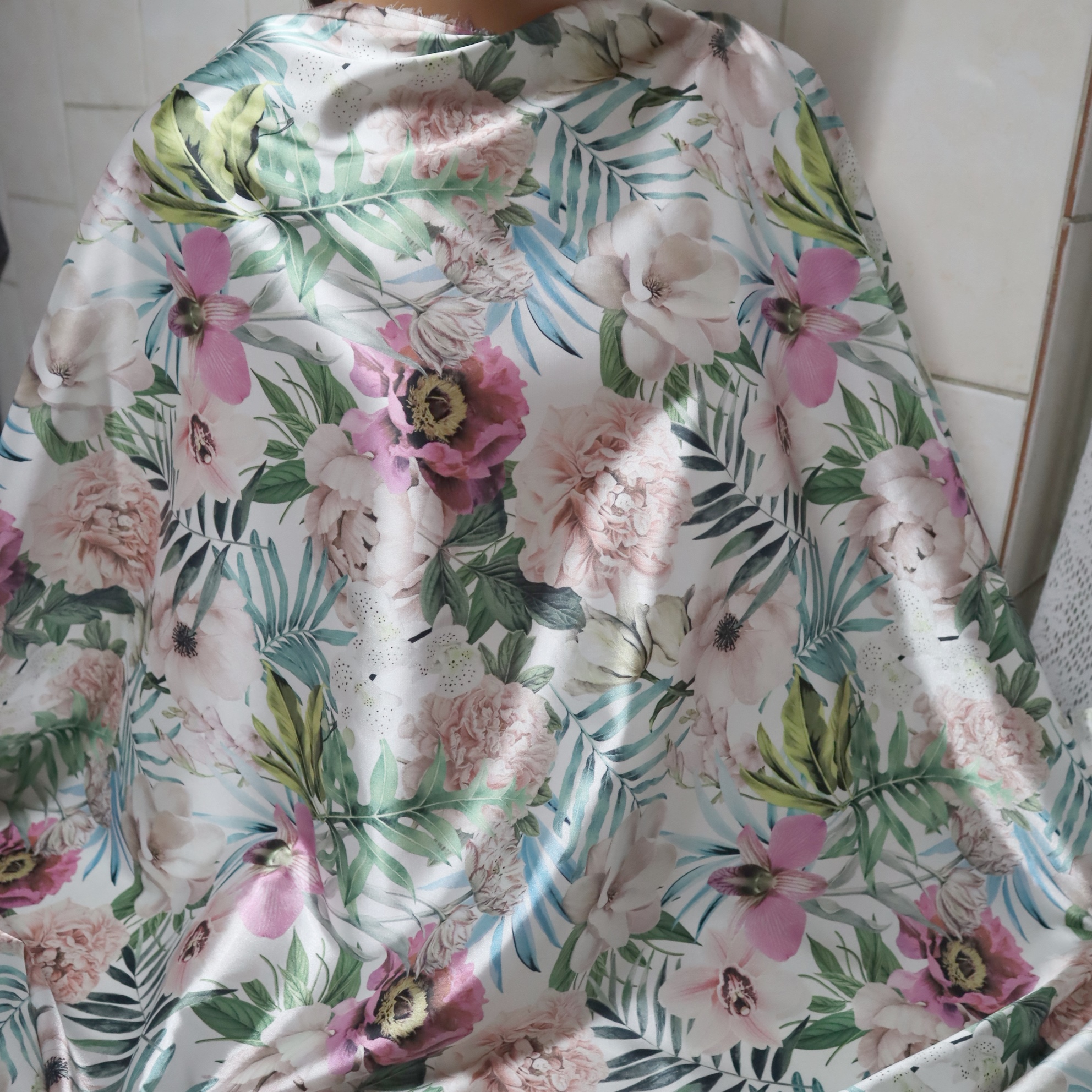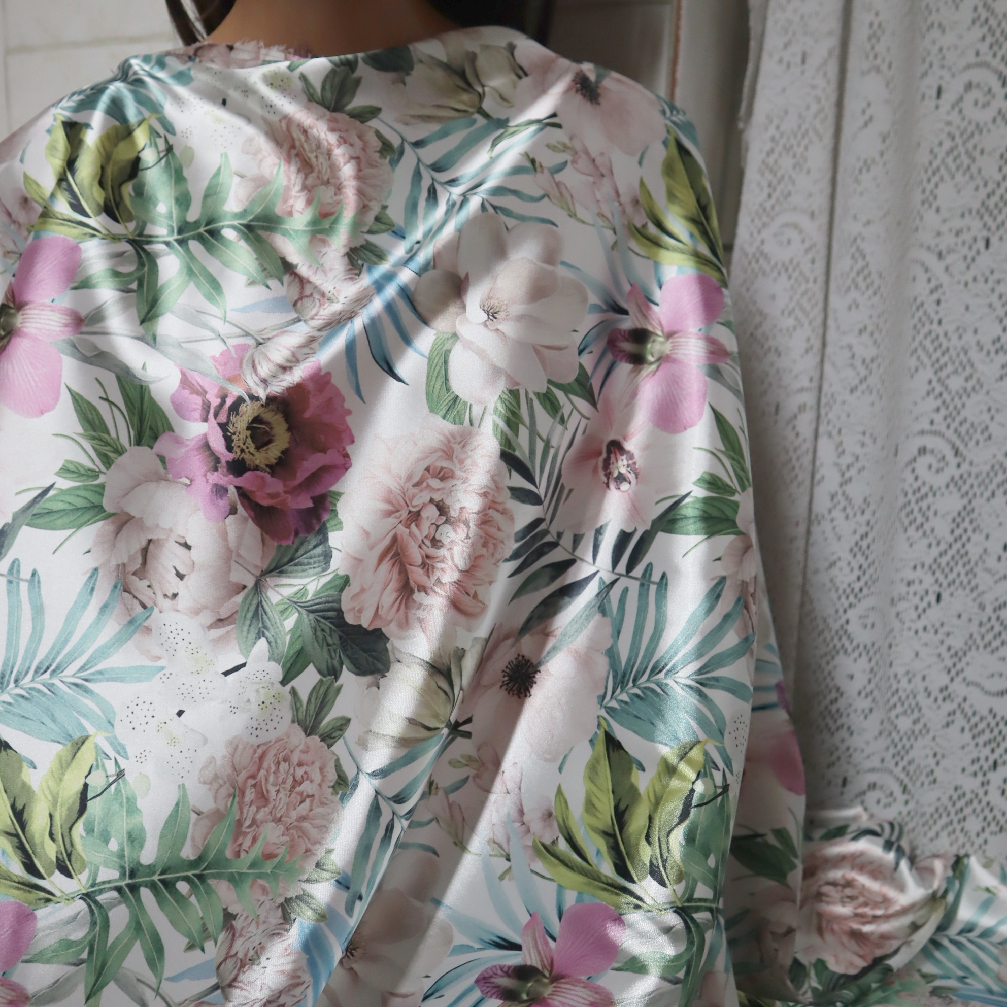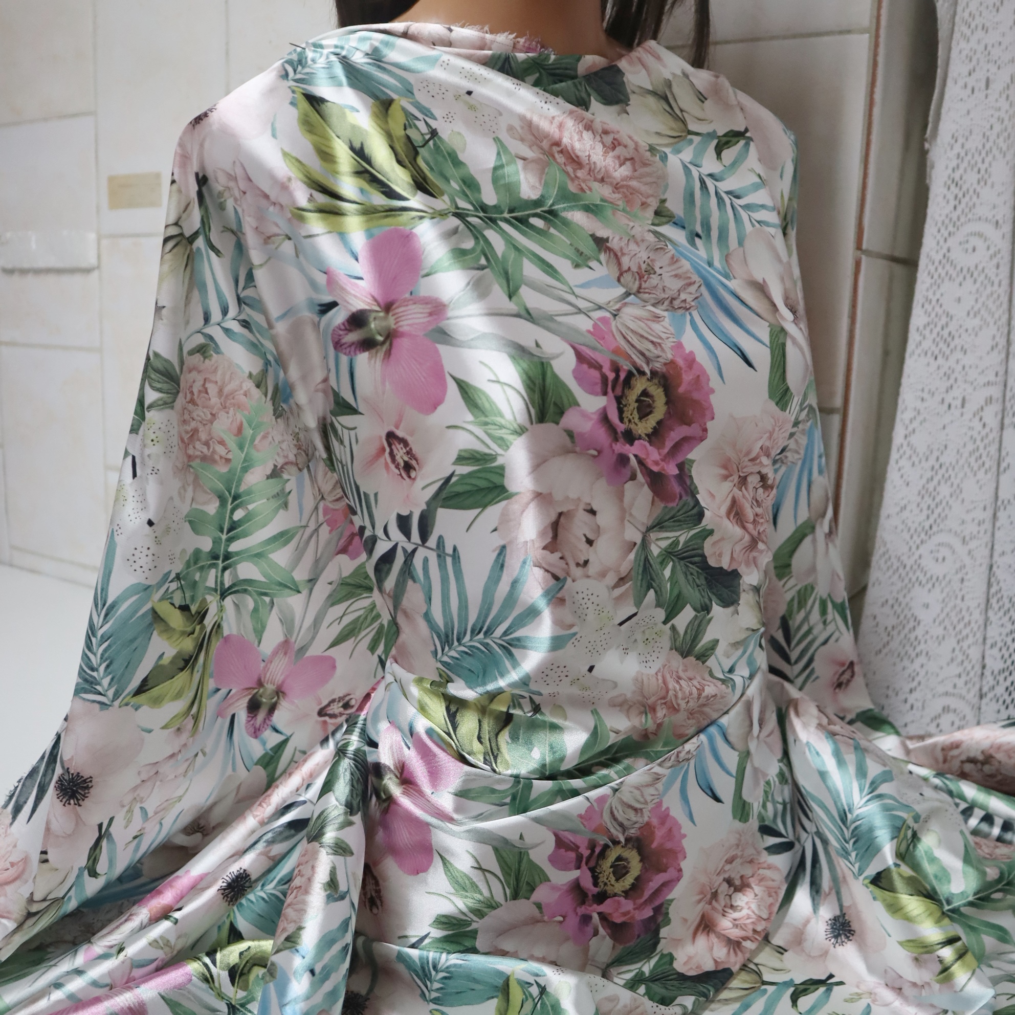 satyna kwiaty - kupon 2m.satén květiny