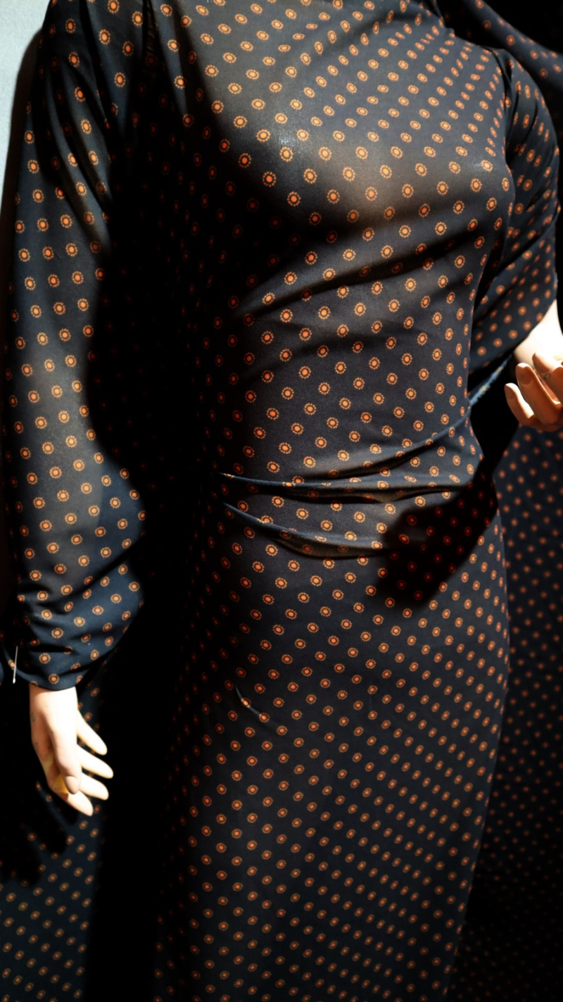 Predstavujeme Vám náš jedinečný šifón - látku, která okouzluje svou lehkostí a vzdušností, přičemž si zachovává stabilitu. Je to ideální materiál pro ty, kdo si cení elegance a pohodlí při nošení. Vyznačuje se jemným vzorem malých puntíků, které decentně zdobí látku a vytváří jedinečný vizuální efekt. Puntíky ve světle žluté barvě na tmavě olivovém pozadí dodávají látce pokojný, avšak zároveň výrazný charakter.