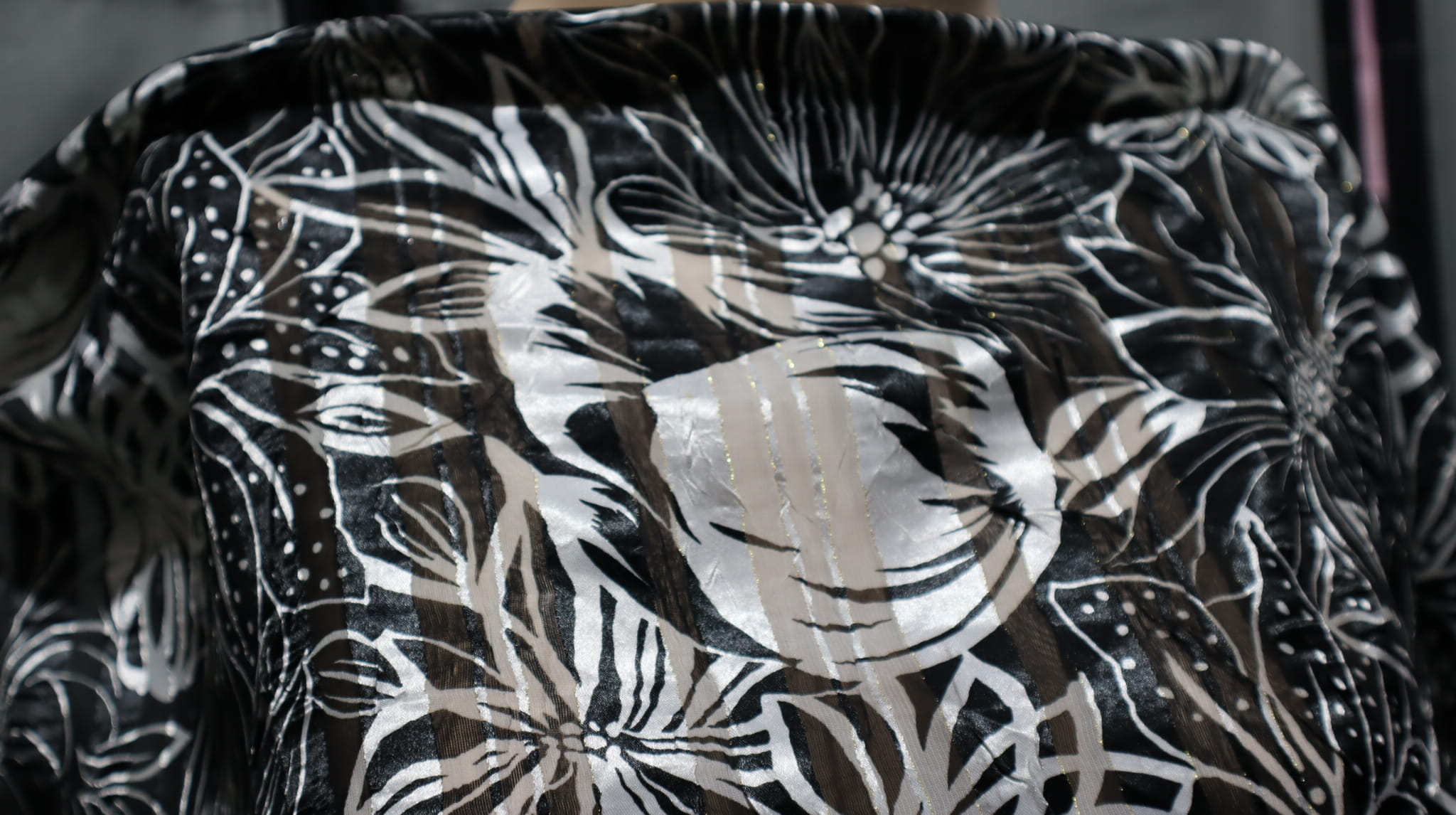 czarne i białe pasy trochę lśniące , jak atlasowe,