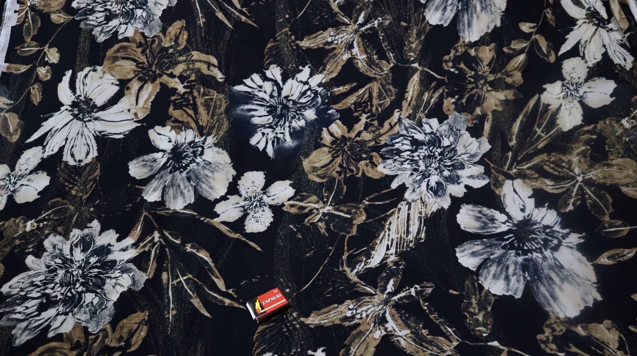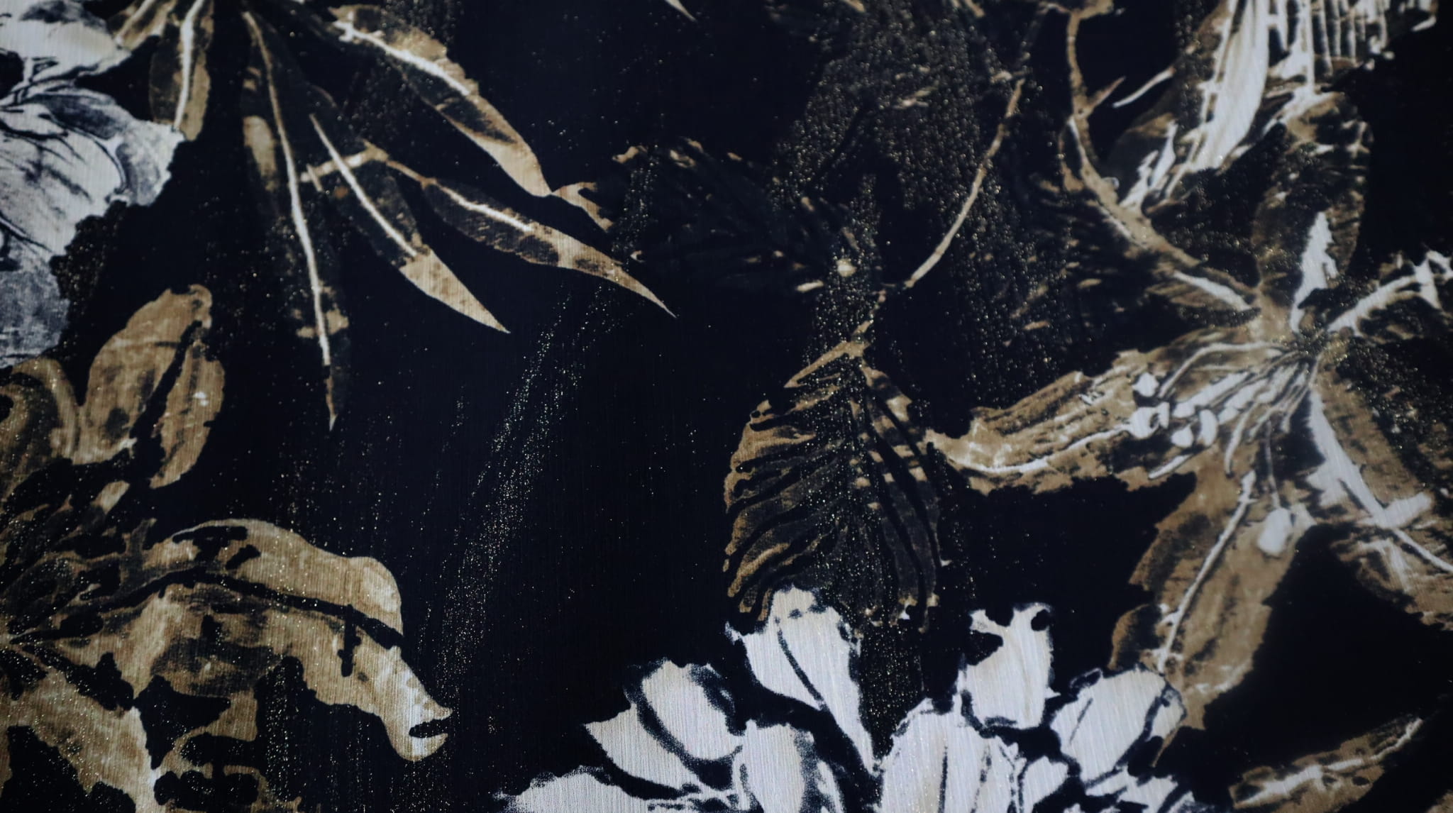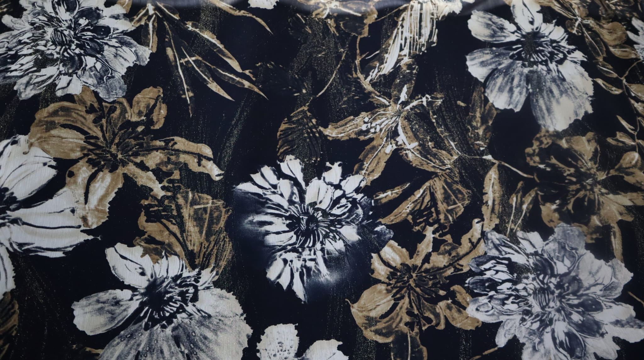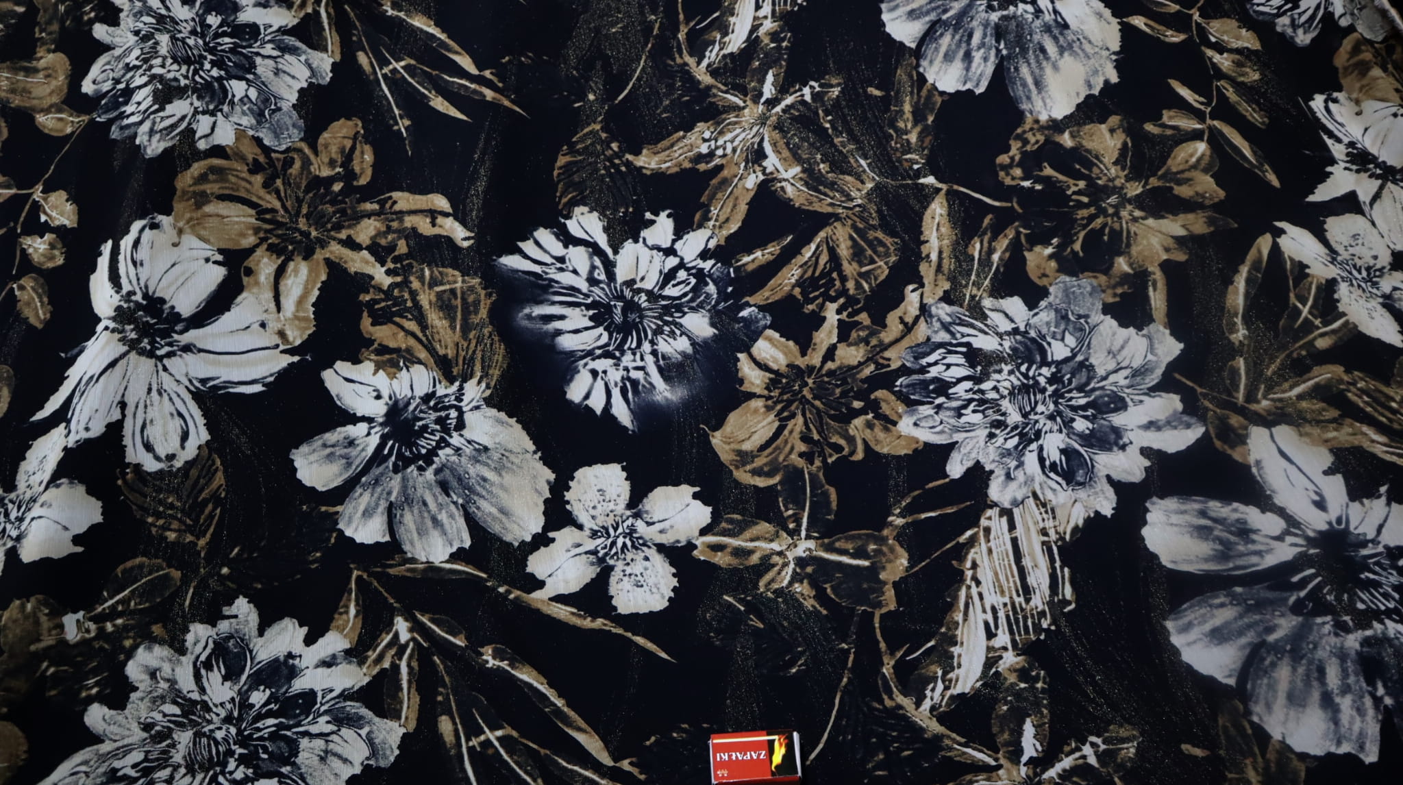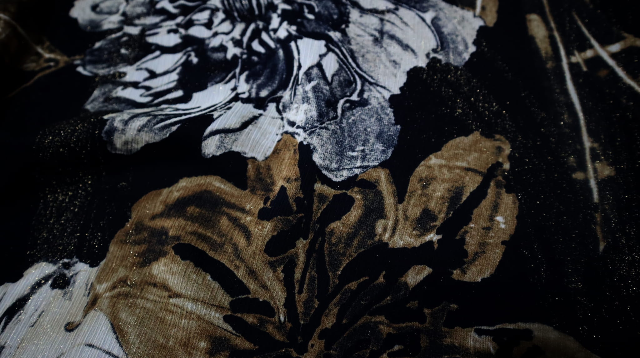 vzor - velké světlé květy na černém pozadí.