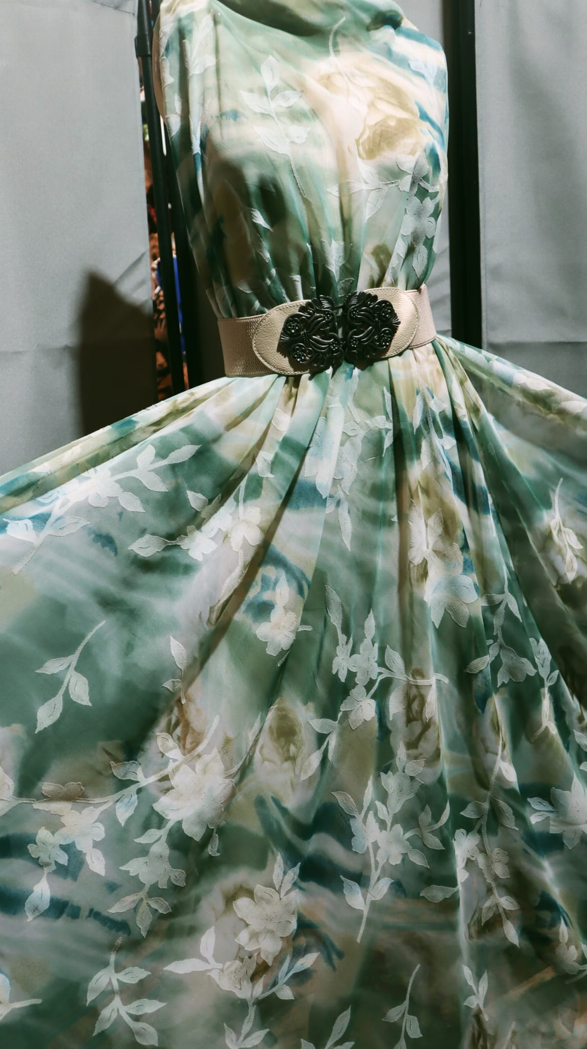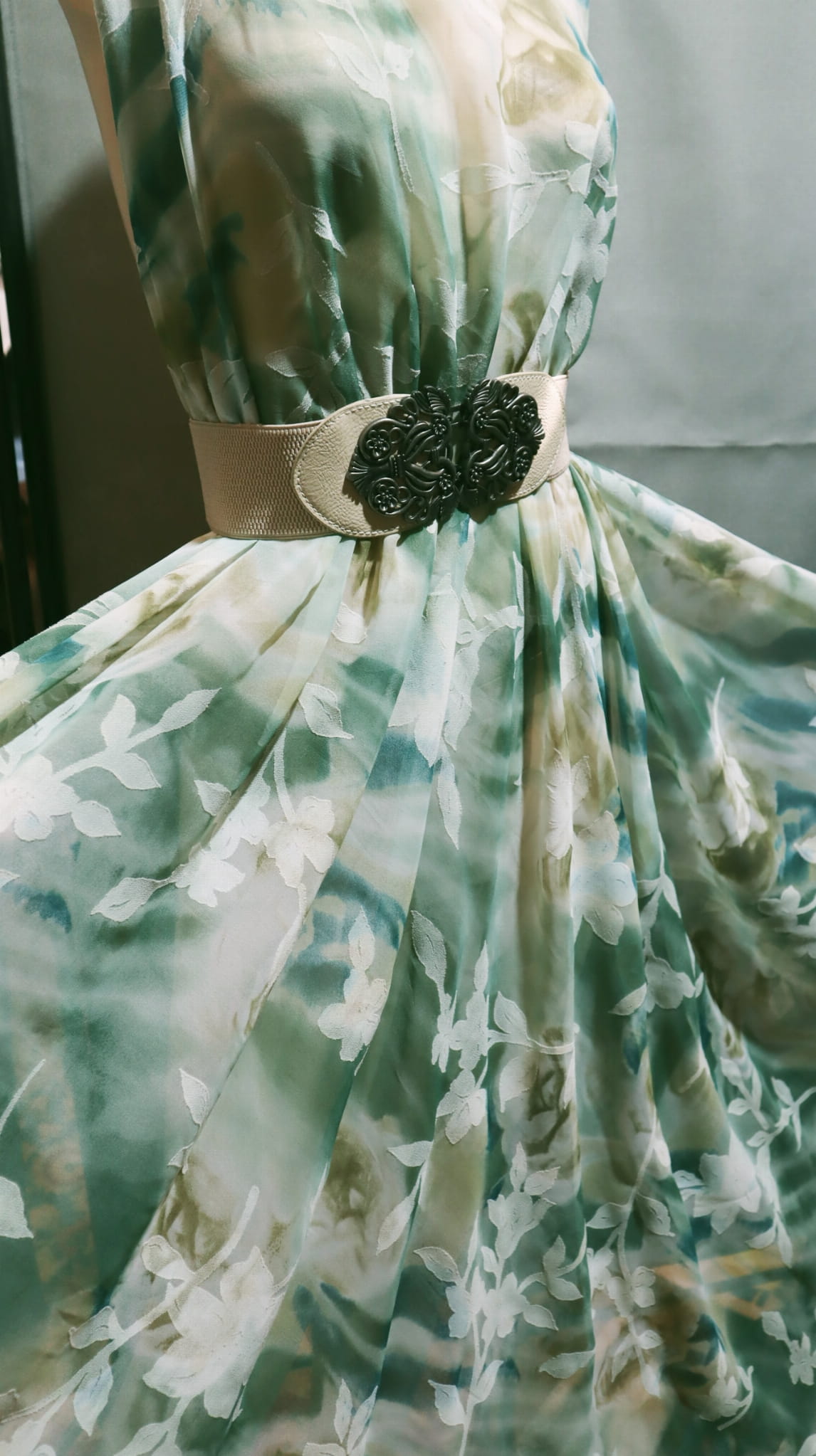 szyfon zielony wzorek - šifon zelený vzor