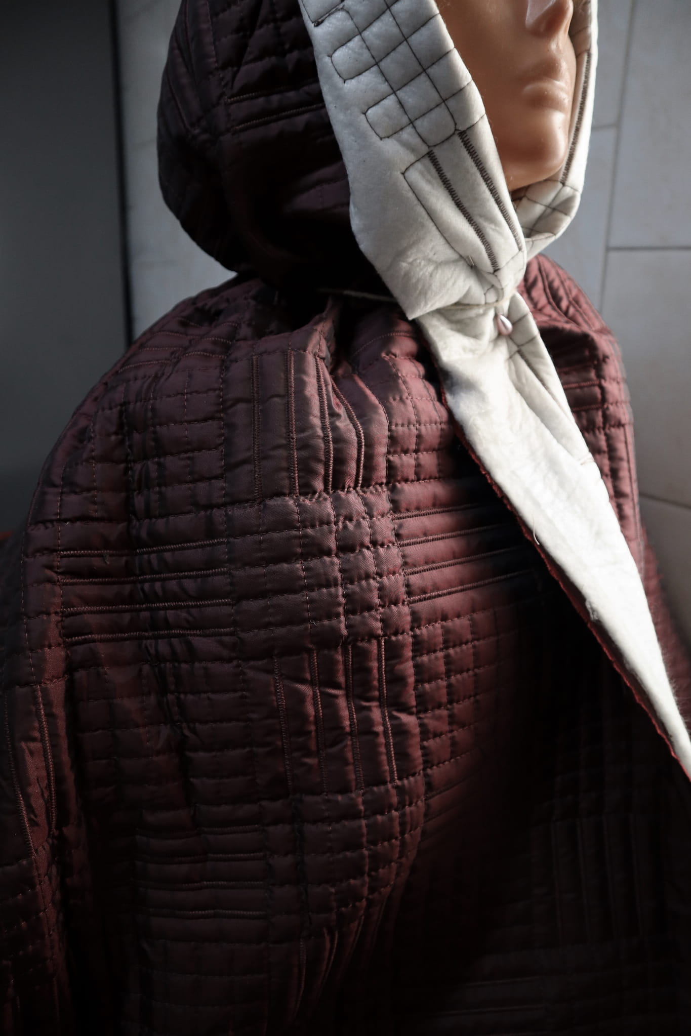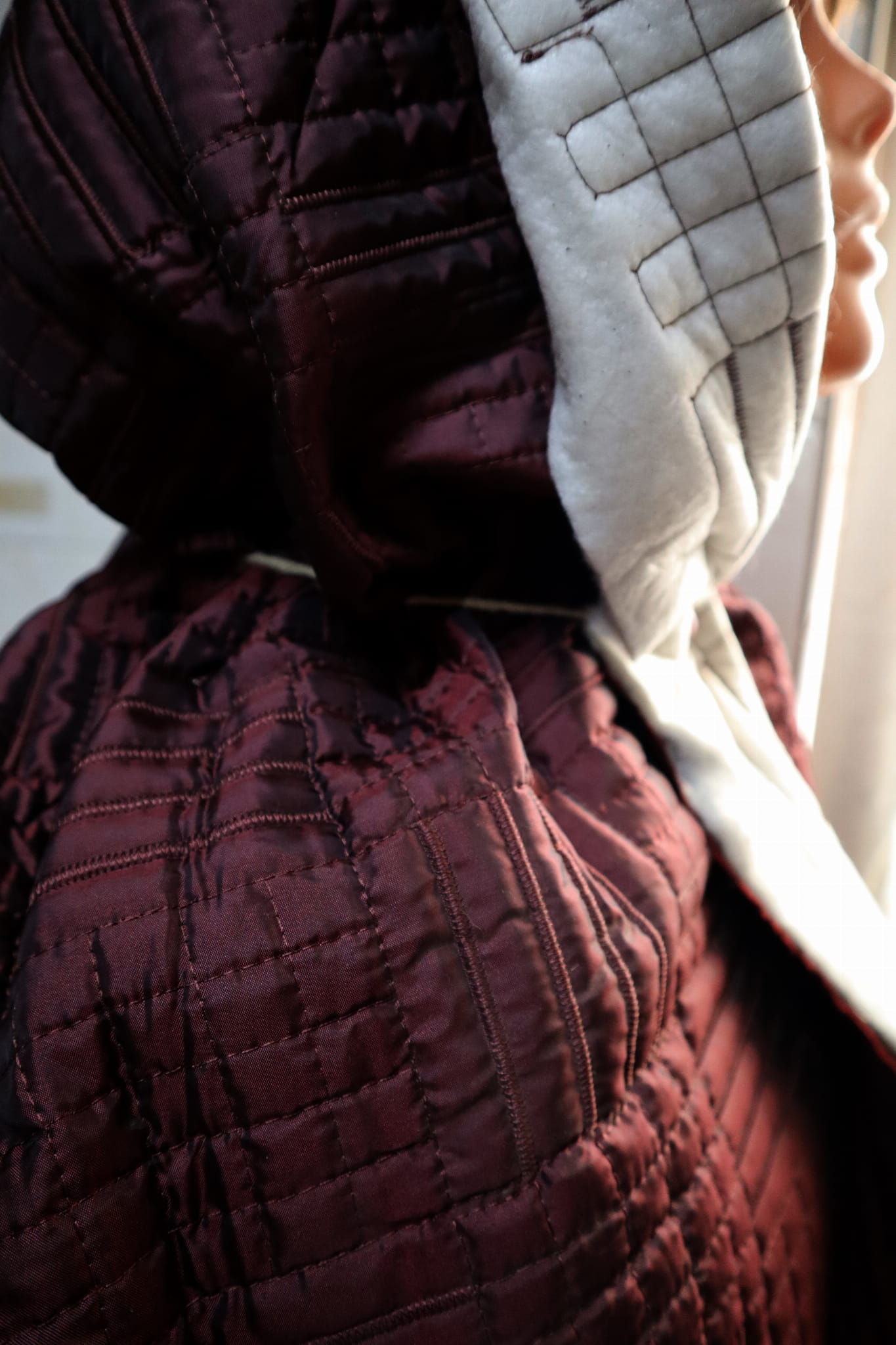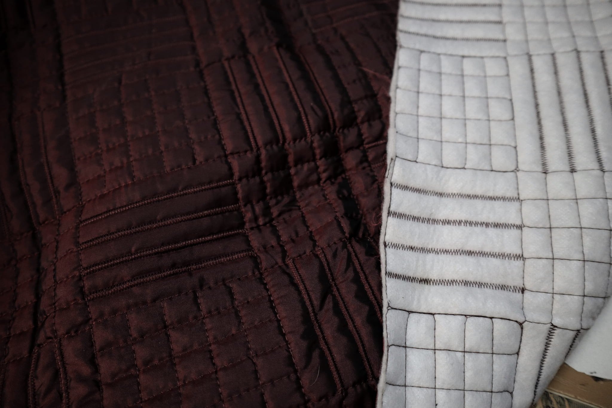 prošívaná látka, vínová barva,