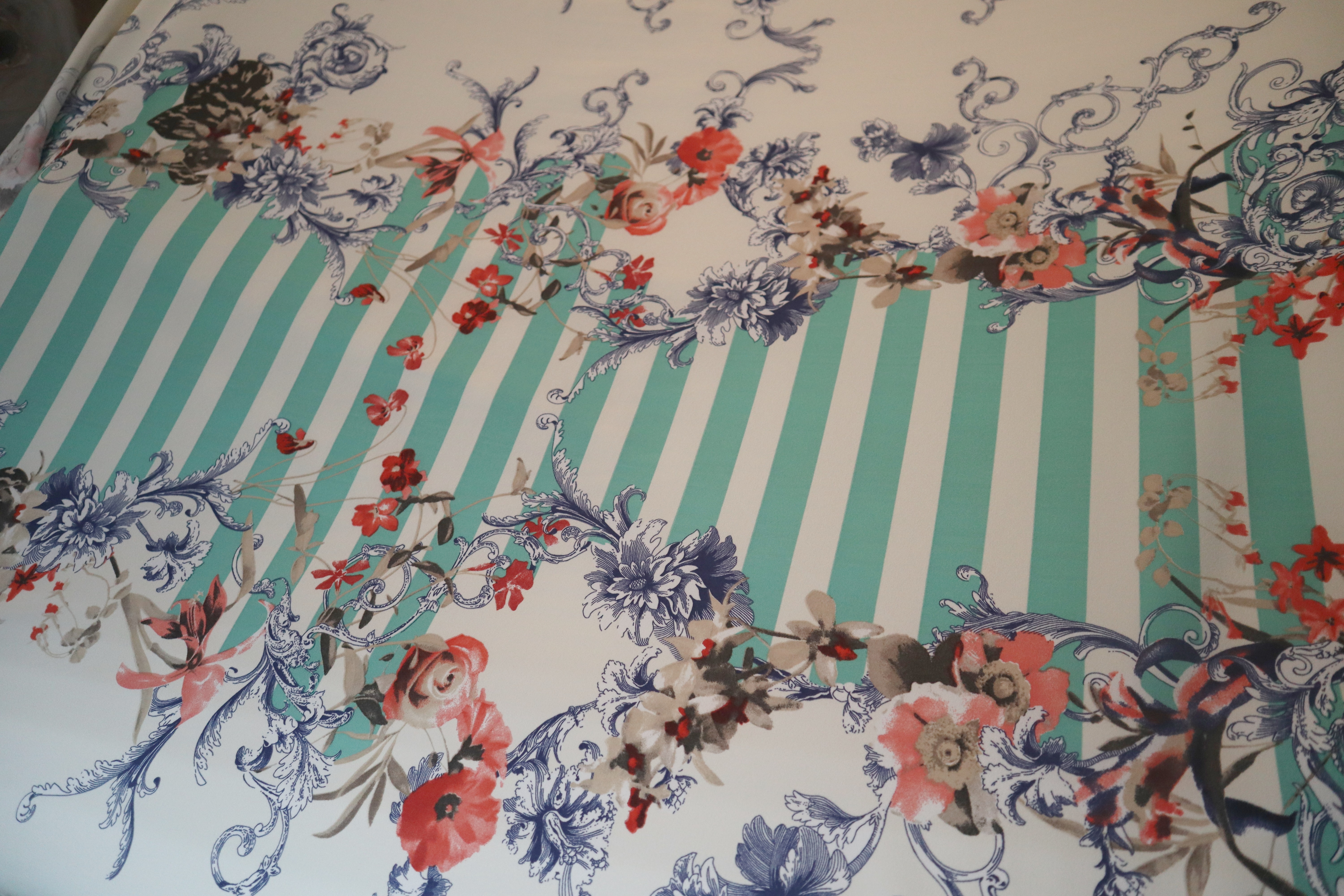 květiny a světle zelené pruhy,