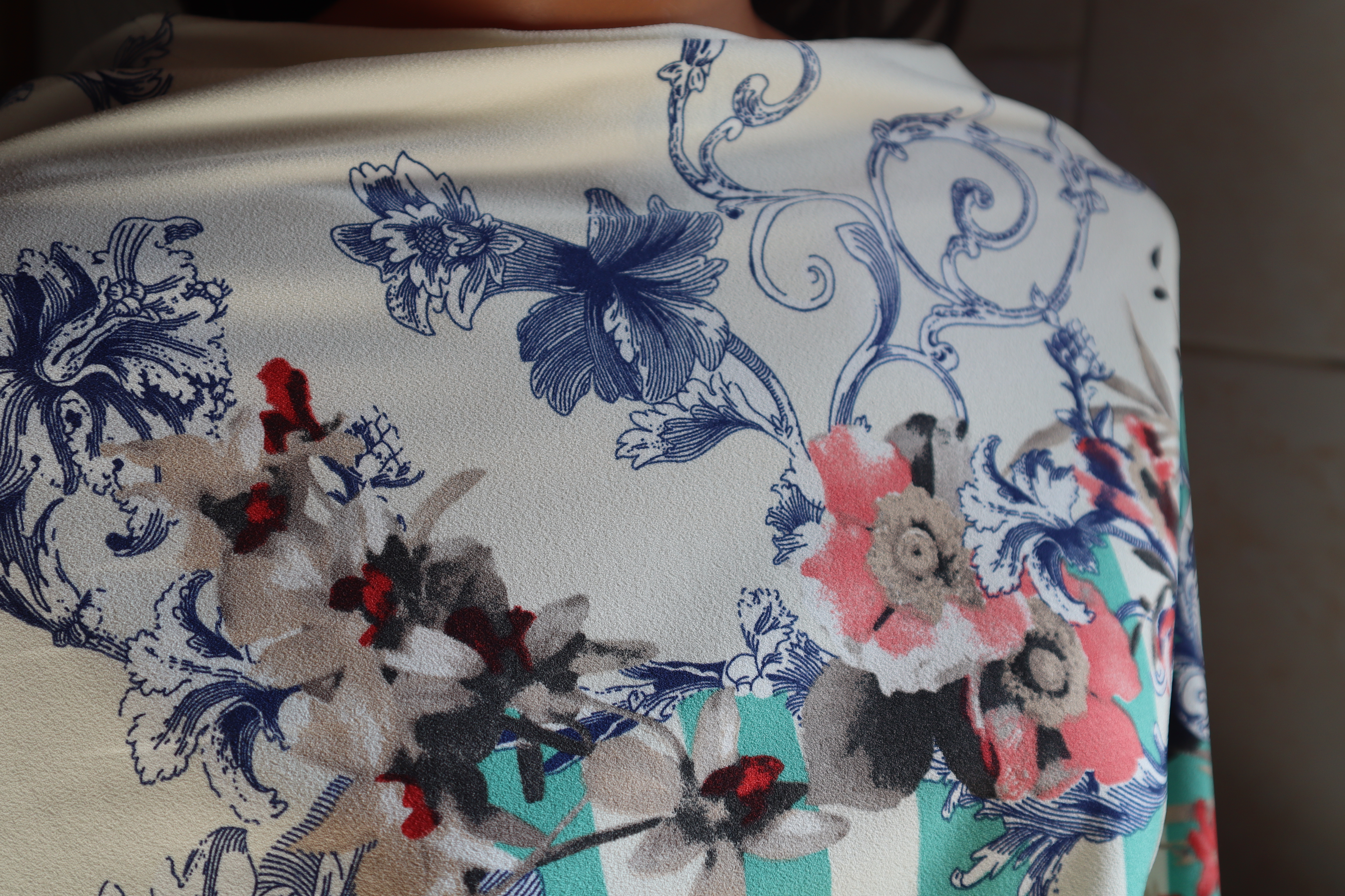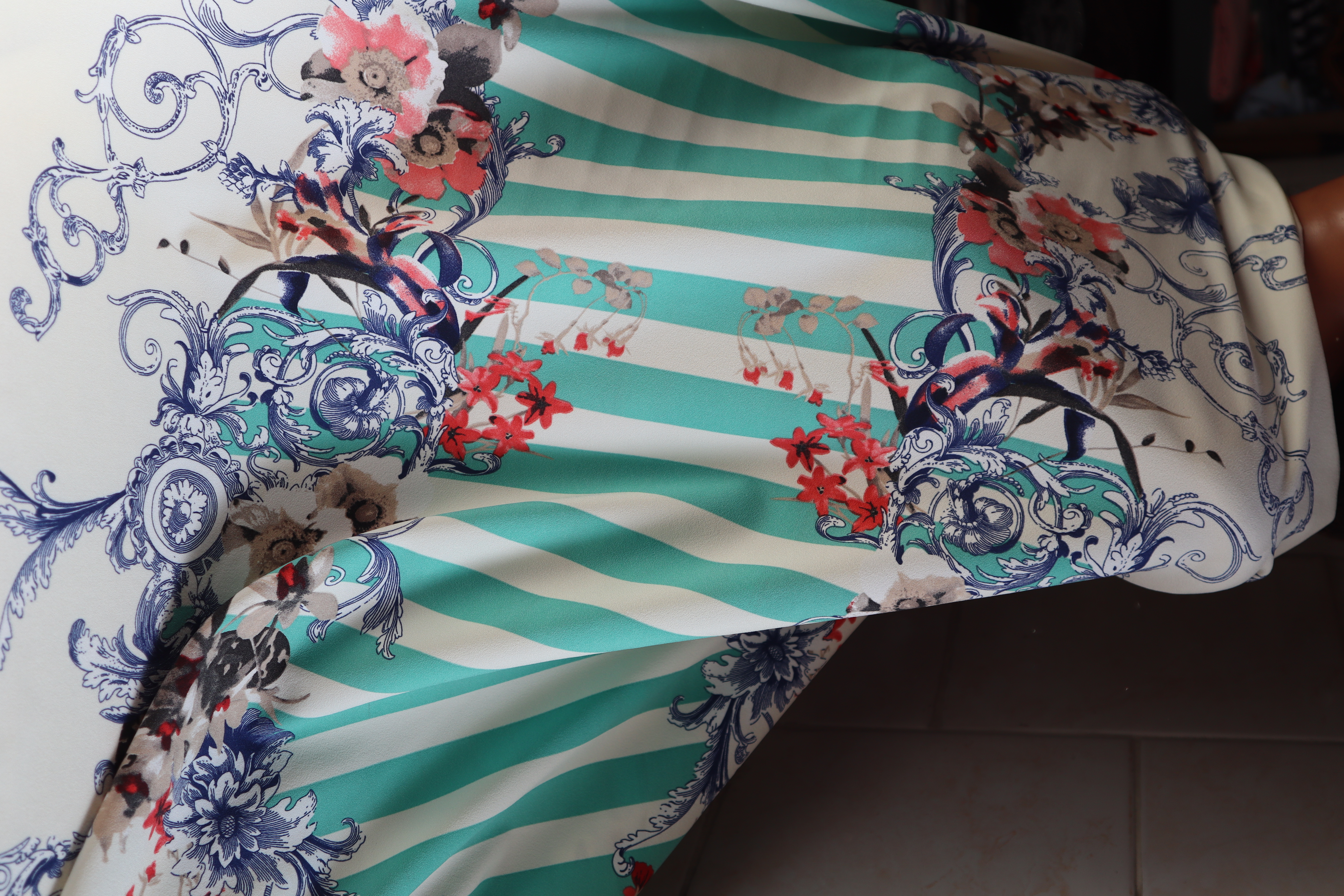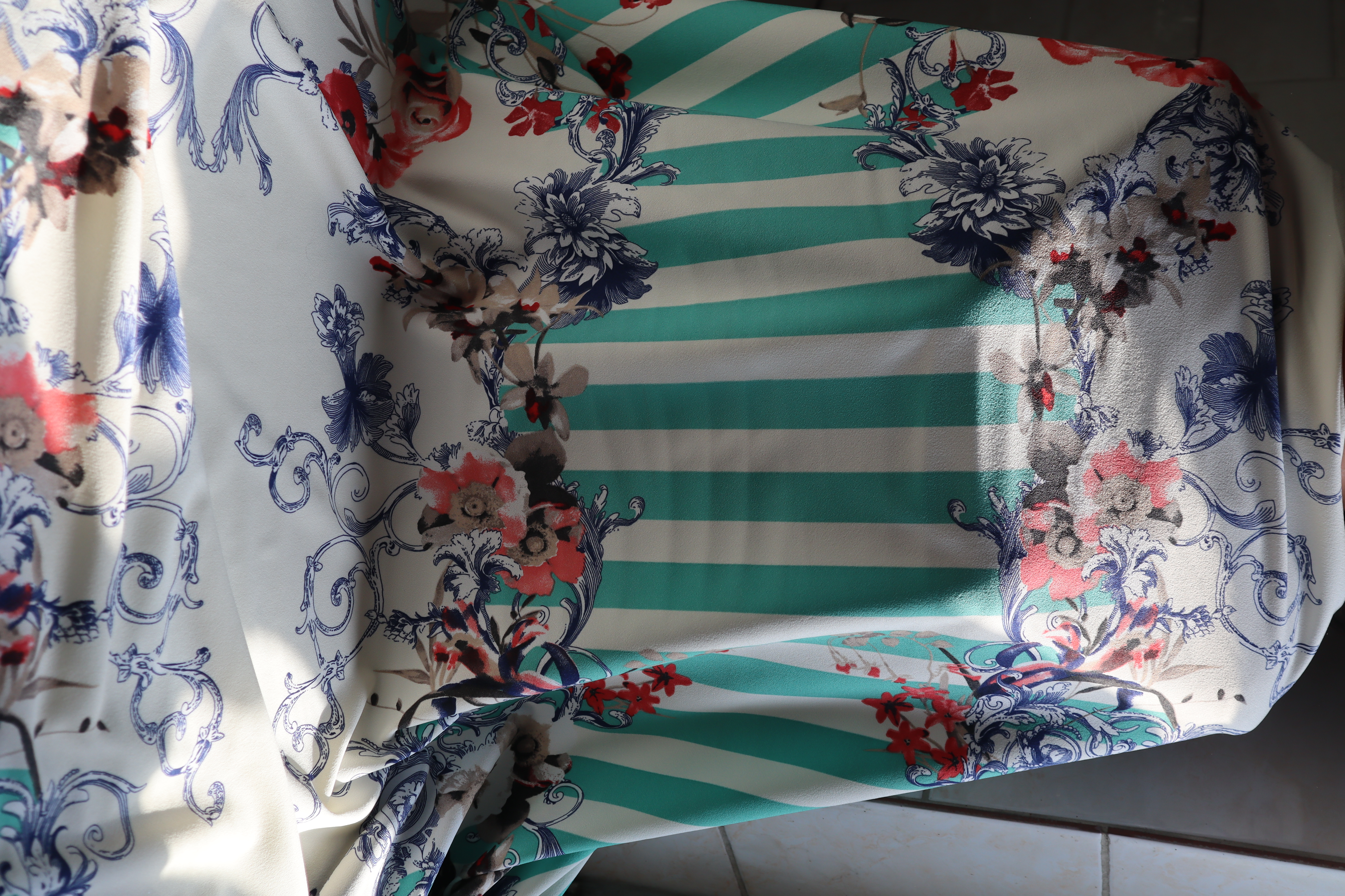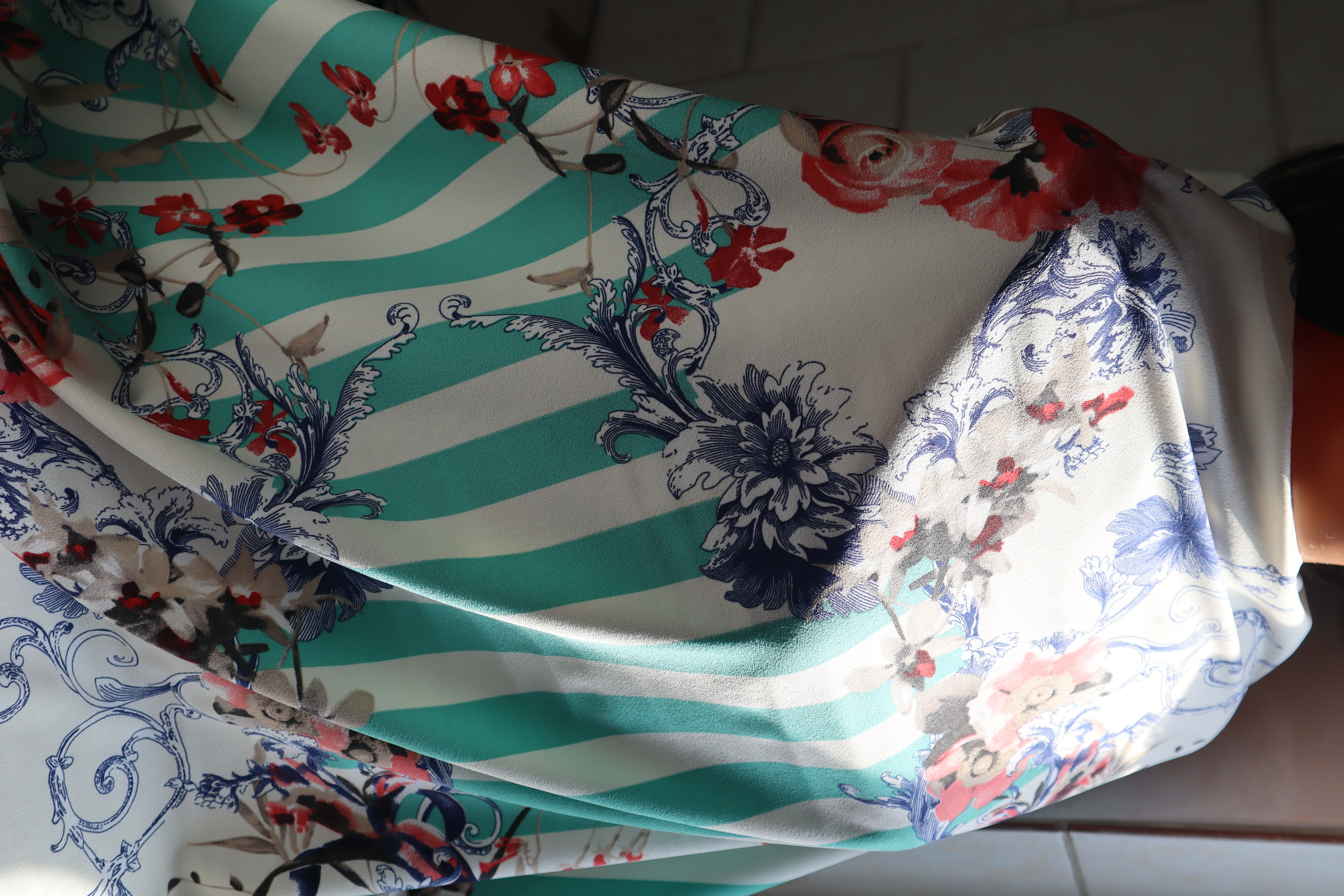 kwiatki i jasne ziekone prążki ,