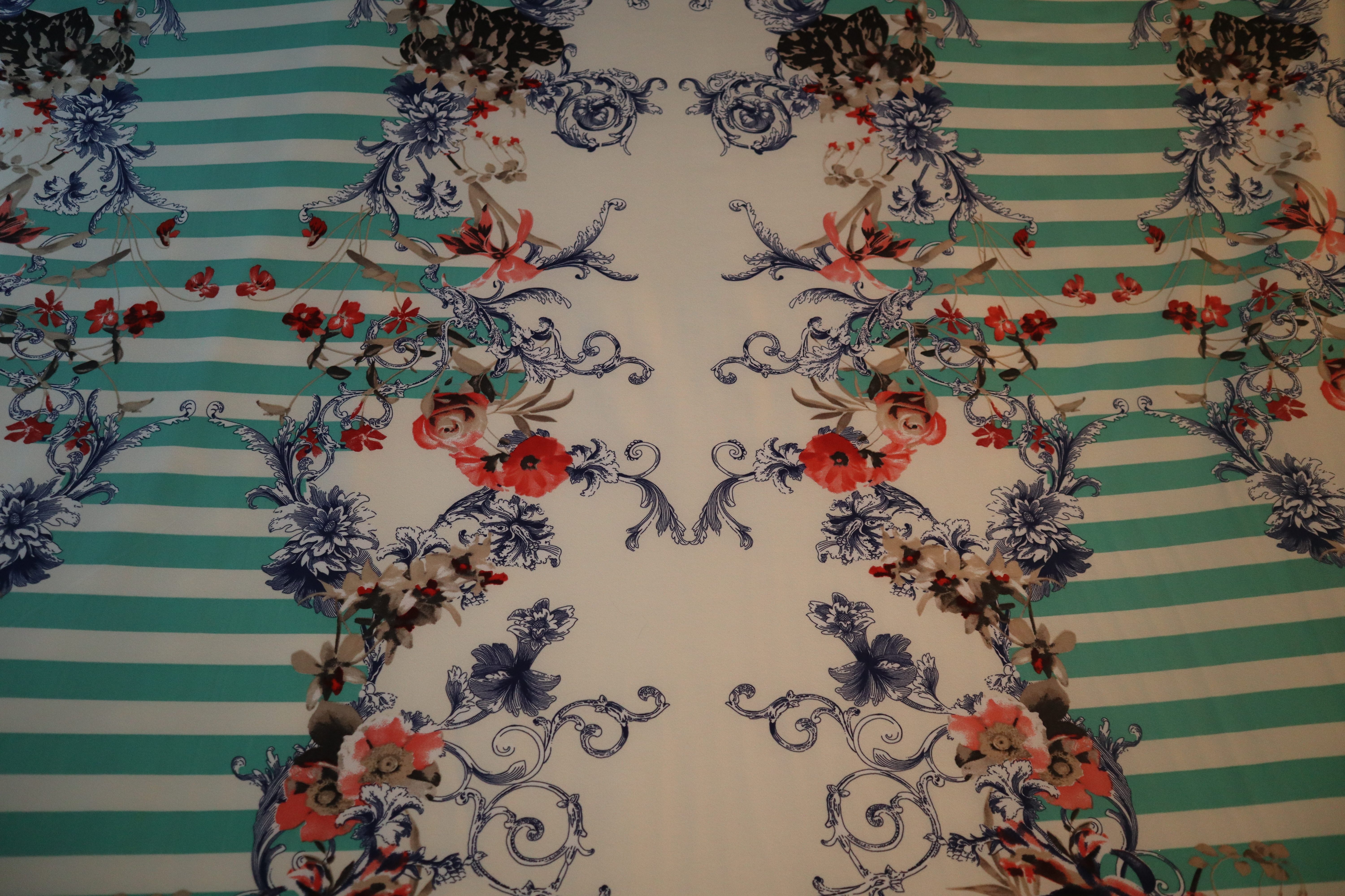 a dlouhý světle krémový pruh podél středu látky.